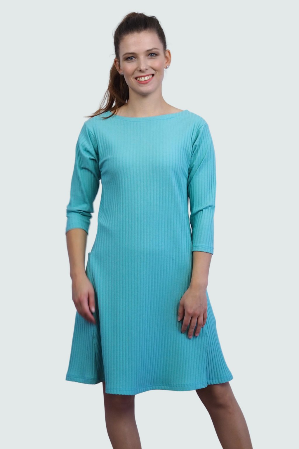 Velmi pohodlné šaty stylu oversized s 3/4 rukávy. Boční členící švy jsou posunuté ke středu, tím postavu opticky prodloužíme a zeštíhlíme. Umístěním kapes v bočních švech, odpoutáme pozornost od nerovností kolem bříška. Výstřih mírná lodička a délka šatů je lehce nad kolena.