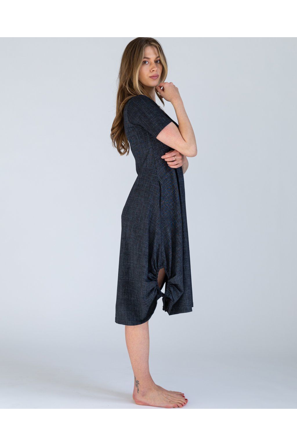 Volnější střih přirozeně splývá a jemně maskuje bříško i boky, takže se v nich budete cítit sebevědomě a pohodlně zároveň.