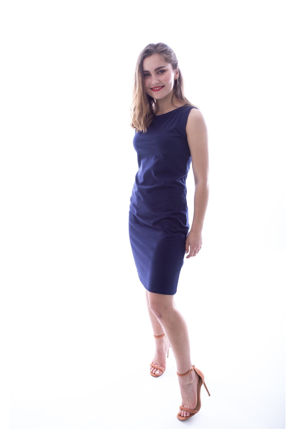 Velmi oblíbené tílkové šaty s délkou nad kolena. Střih kopíruje tělo a doplňuje ho dokonalý lodičkový výstřih. Abyste si vytvořila jedinečný outfit, doplňte šaty o různé pásky a šátky.